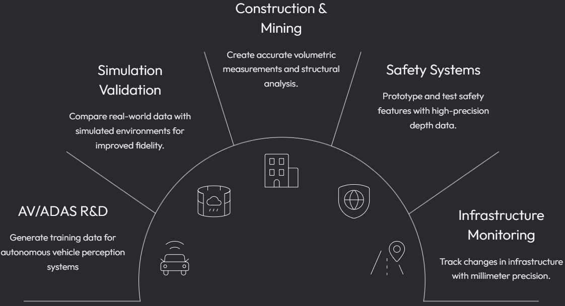 Ideal for physical AI training, world model development, perception validation, and 3D mapping